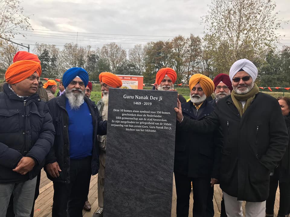 OFBJP family is proud of Guru Nanak Gurudwara Sahib Amsterdam celebrated 550 years Birth Anniversary of Guru Nanak Dev Ji by walking the talk on Humanity and Sustainability. Jeroen van Berkel and his entire team from Gemeente Amsterdam ( west) were present to support this auspicious occasion. Once the Gemeente Amsterdam members arrived at Gurudwara Sahib there was prayer service. This was followed by opening ceremony of Planting of 55O trees and handing over free food packets to Nederlandse Voeding Bank for 550 needy people.